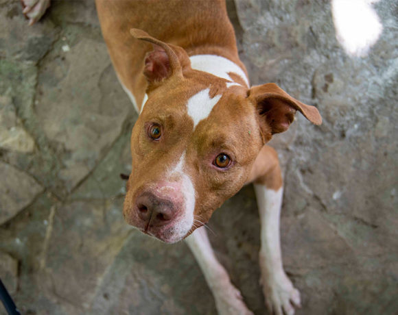 Tolby es un perro grande, cruce de Mastín, de pelo corto, blanco con manchas canela, bastante independiente, en busca de...