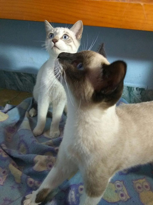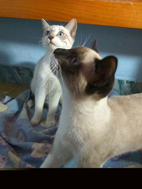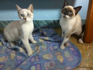 Sin embargo, Pingo y Miércoles padecían Ataxia (seguramente heredado de su madre) y eran exageradamente miedosos, por loque no se podían dar en adopción en ese estado y se quedaron en casa de Rebeca, su familia de acogida. El objetivo era por un lado ayudarles a superar sus miedos (no se acercaban a las personas) y a mejorar sus síntomas.