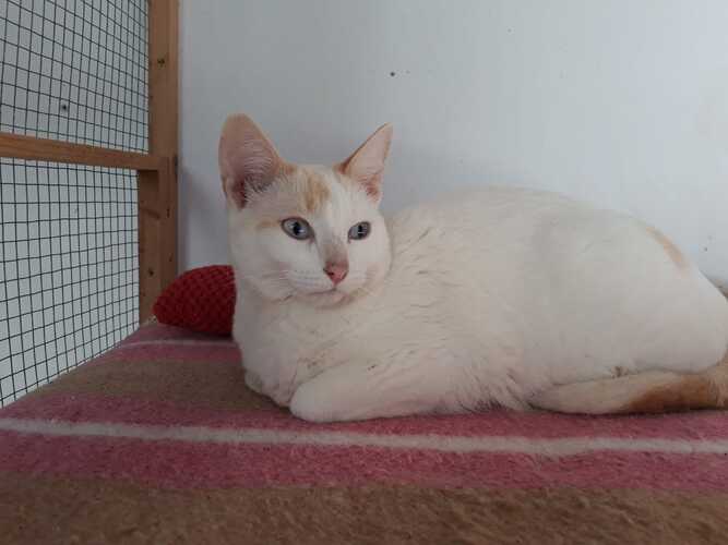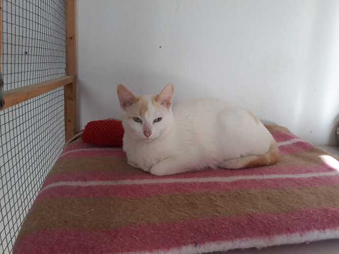 Agatha es una perra grande, de raza Podenca, de pelo corto, marrón y blanco en busca de un nuevo hogar...