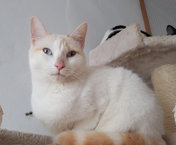 Andrea es una gata juguetona y mimosa, no tiene reparo en pedir mimos si te ve cerca.