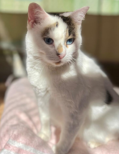 Charly es un gato común europeo de color blanco con manchas atigradas, sociable y muy cariñoso en busca de adopción.