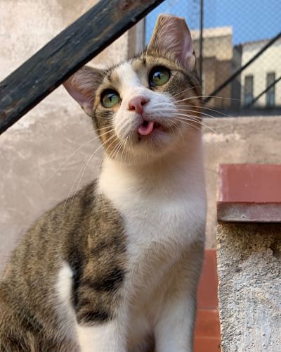 Fue encontrado dentro del cementerio de Castellón, seguramente abandonado, porque se veía un gato casero, se arrimaba a todos los humanos que pasaban, el pobre estaba en un estado increíblemente mal, que es normal en gato que no sabe vivir en la calle.
