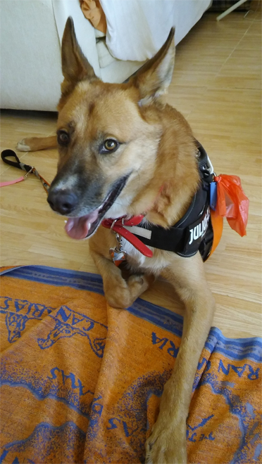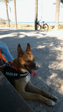 Es adorable, le gustan las caricias y los grandes paseos por zona de playa. Lleva un tiempo con nosotros, su adaptación ha sido perfecta, es noble, cariñoso y juguetón. Es muy sociable con personas (con los hombres tiene un vínculo especial) y bien también con otros perros. No le gustan los espacios pequeños ya que por su tamaño necesita algo de espacio. Está educado, sabe hacer sus cosas fuera de casa, esperarte en tu vuelta y pasear con correa y subir para pasear en coche es su afición favorita! Te da la patita también… Tiene todas las vacunas, chip, desparasitado y castrado. Su carácter como hemos dicho es excelente, ya que tiene muchísimas ventajas al estar educado y ser tan sociable! De hecho, paseando, sin conocer, se acerca a perros pequeños para jugar.