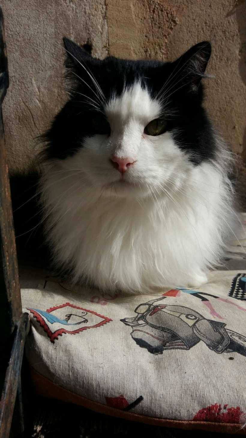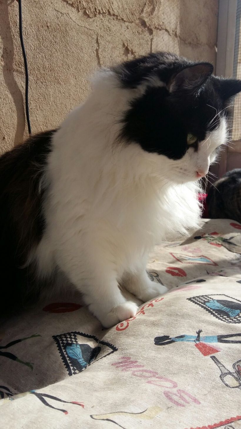 Gordon es un gato muy guapo de pelo largo blanco y negro. Estaba en la zona de la Guardia Civil y le pegaban todos los gatos, por su extremada belleza y elegancia, suponemos que seguramente es un abandono. Lo rescatamos y al testarlo nos dimos cuenta de que era inmunodeficiente. Gordon por eso es un gatito especial, necesita un poquito más de atención. Le gusta el exterior, es un gato alfa, por eso mejor que sea gato único en un hogar. Es un gato muy cariñoso que pide siempre muchos mimos y cuidados, se nota su agradecimiento y le encanta que le peinen y le acaricien.