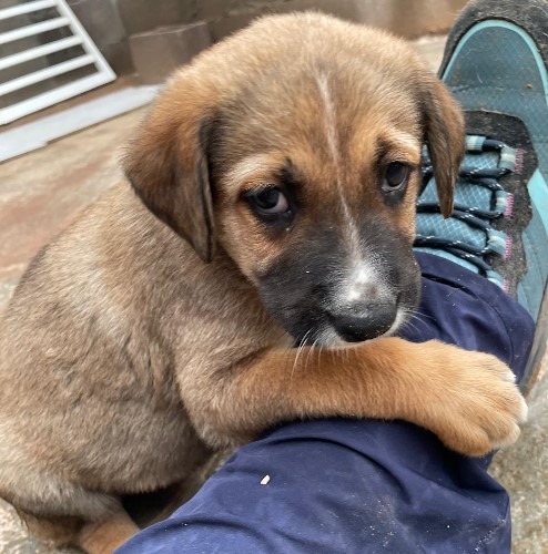 Es una cachorra que se fue rescatada junto a su madre y sus 10 hermanos. Otro caso de abandono y camada involuntaria. La familia que los rescató solo puede hacerse cargo de la madre por lo que buscamos nuevas familias para los 11 cachorros (6 machos y 5 hembras).