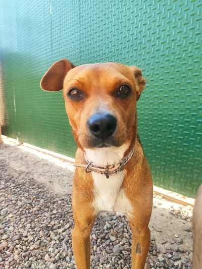 Leo es un perro de raza ratonero que pesa aproximadamente 8 kg y que está buscando adopción.