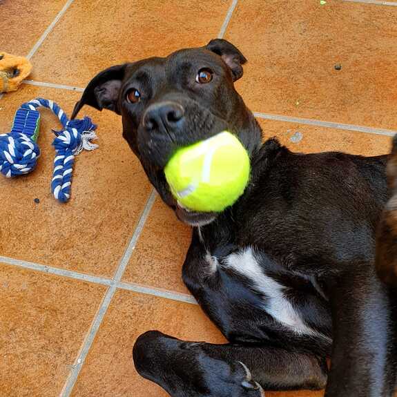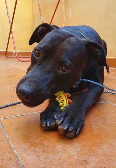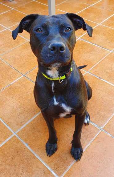 Si vives en Castellón o Barcelona y quieres adoptar un perro joven cruce de Pitbull o conoces gente que quiera adoptar a un perro, esa es Luna, contacta con nosotros por whatsapp al 666 53 82 83