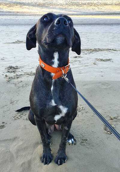 Luna es una perra muy sociable la cual no desperdicia ni un solo mimo, además tiene mucha energía y disfruta de paseos largos por la montaña y por la playa.