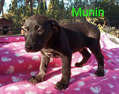 Munin es un cachorrito de 2 meses de edad de 4,875 kgs muy bueno y mimoso. Su mamá Ariel es una Border Collie de 24 kgs y el padre desconocido. De mayor será de tamaño grande.