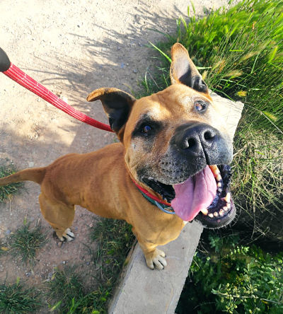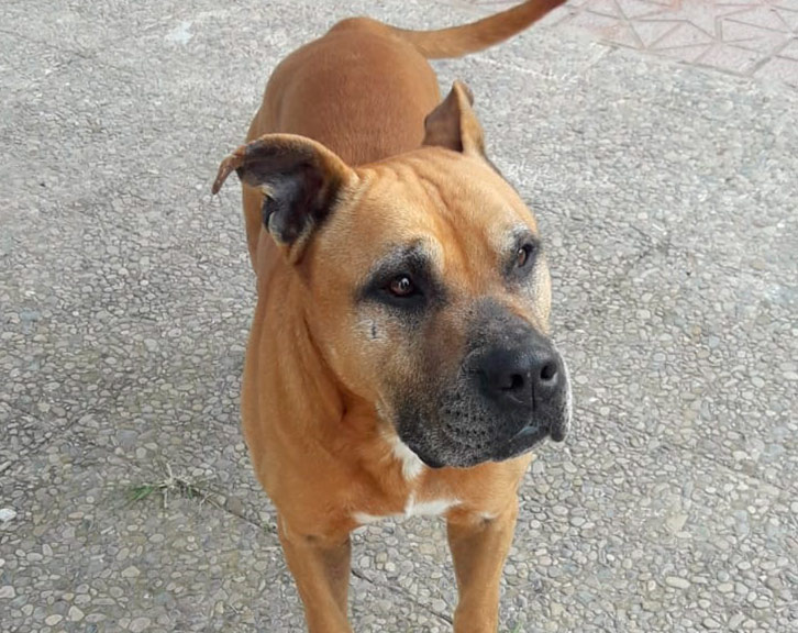 Nelo es un perro cruce pitbull que pesa aproximadamente 28kg y que está buscando adopción después de perder a su responsable legal.