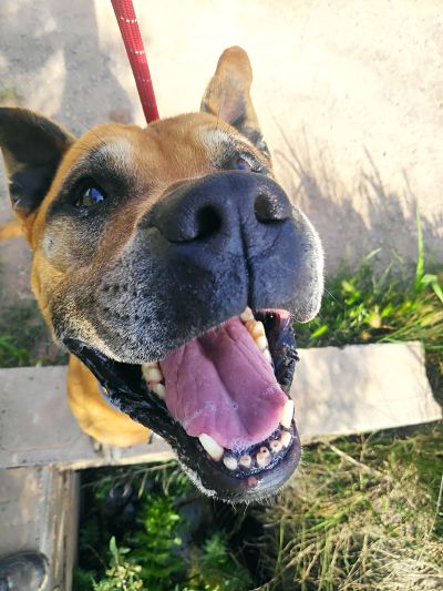 Nelo es un perro muy activo, alegre y juguetón, en el refugio convive con otros perros.