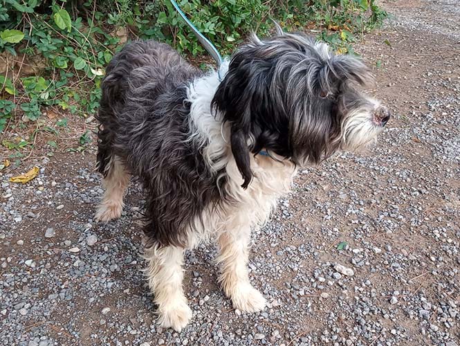 Hembra, edad aprox. 4-5 años, tamaño MEDIANO, aprox. 12 kgs., raza PASTOR CATALÁN, color GRIS Y BLANCO, pelo LARGO.
