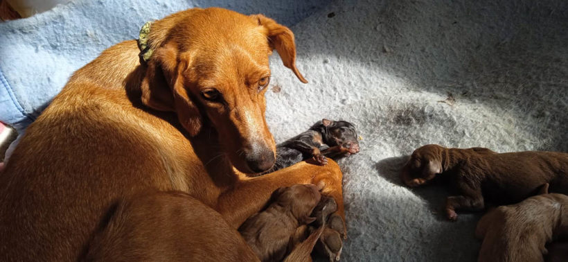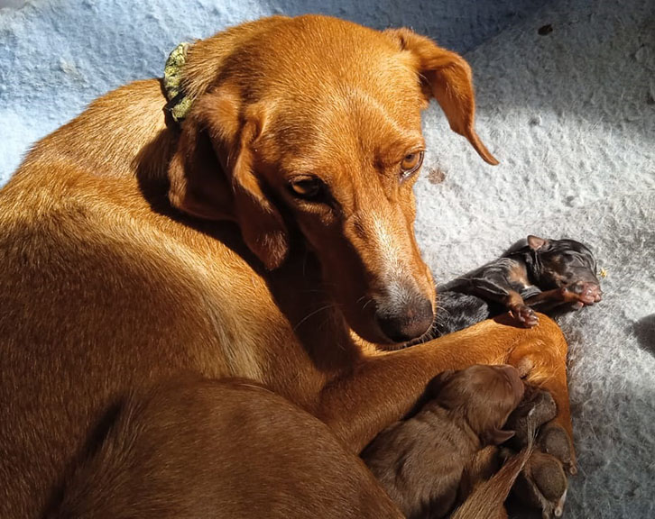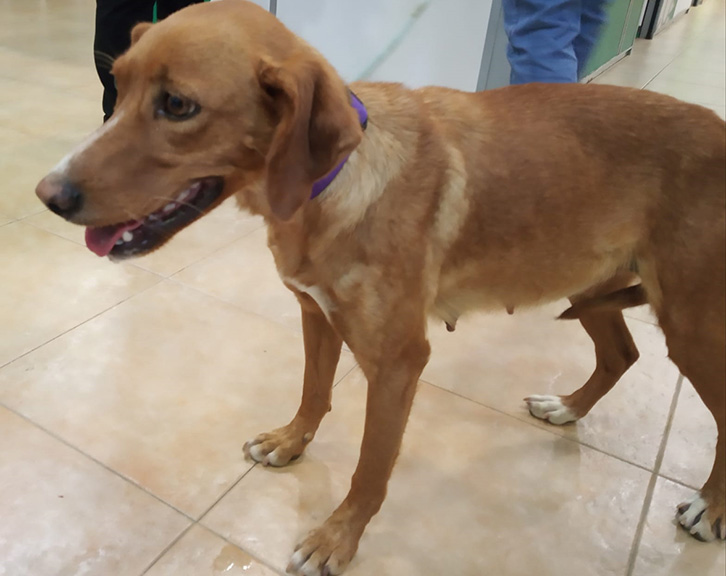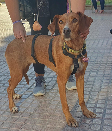Lexi es una perrita joven de color canela, cruce de podenco, una mamá de 8 cachorritos, valiente y cariñosa, en busca de una nueva familia.
