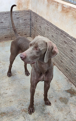 Macho, 2-3 años aprox., tamaño GRANDE, 35-38 kg, BRACO, MARRÓN CHOCOLATE, pelo CORTO.