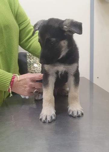 Su estado físico es bueno, su aspecto es normal y su dieta es de cachorro.