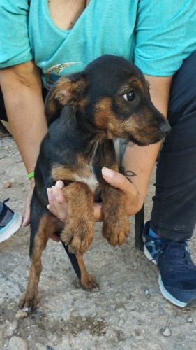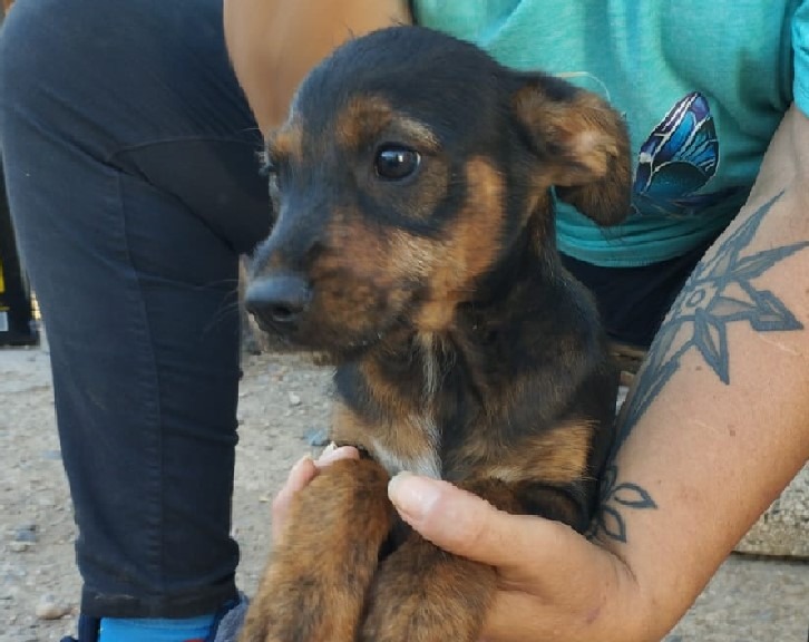 Es un cachorro que fue rescatado junto a sus 6 hermanos (contándole, 3 hembras y 4 machos). Un hombre escuchó ruidos mientras trabajaba y se encontró a la madre atropellada y a los 7 cachorros.