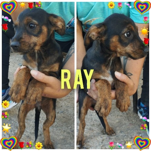 Ray es un cachorro mestizo, de tamaño mediano, pelo corto y color blanco, negro y marrón. Es muy juguetón. Necesita una oportunidad para encontrar una familia adoptiva.
