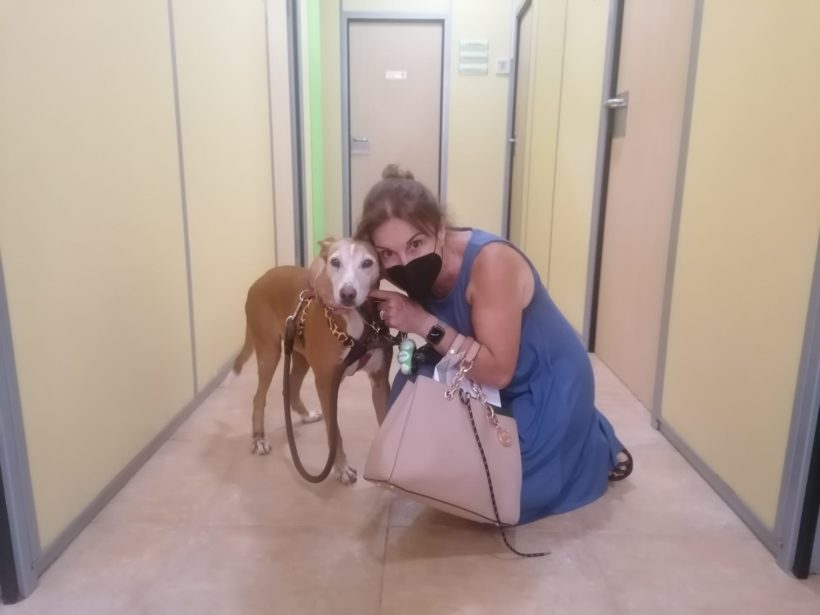 Fue rescatada vagando por la calle junto a otro perro que también está en la protectora, al cual llamamos Marcos. Los rescatan en marzo del 2021, en plena pandemia, y nos piden ayuda porque estaban en un estado lamentable, enfermos y extremadamente delgados, es entonces cuando son llevados a nuestro refugio.