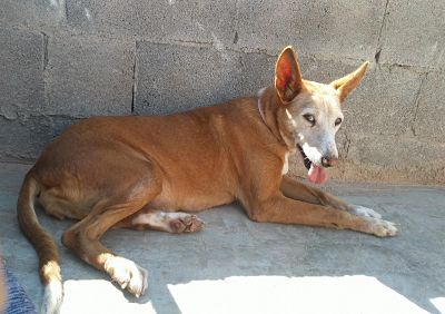 Santa es una preciosa podenca que está buscando adopción, es talla mediana y pesa aproximadamente unos 20kg.