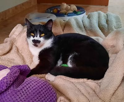 Titán ha crecido rodeado de varios gatos y de humanos, no obstante es un gato muy prudente y primero te tiene que conocer para acercarse, pero es un gato muy sociable, además de ser tranquilo, cariñoso y algo curioso. En la protectora su colega es Luc, otro gatito que llegó como él, siendo un bebé.