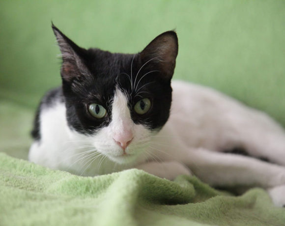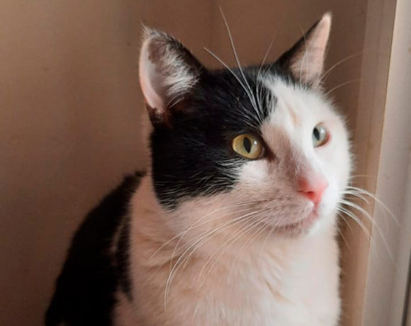 Bigotes en un jovencisimo gato blanco y negro que  fue abandonado en una colonia del Grao controlada con metodo  CER...