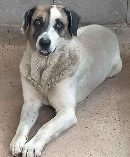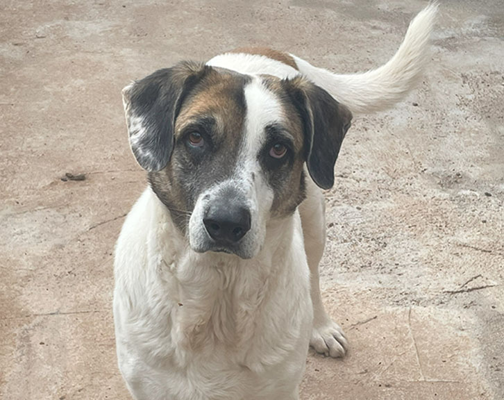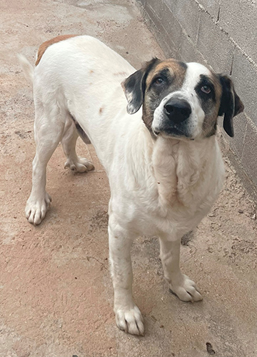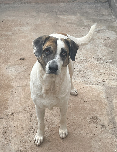 Tolby es un perro grande, cruce de Mastín, de pelo corto, blanco con manchas canela, bastante independiente, en busca de...
