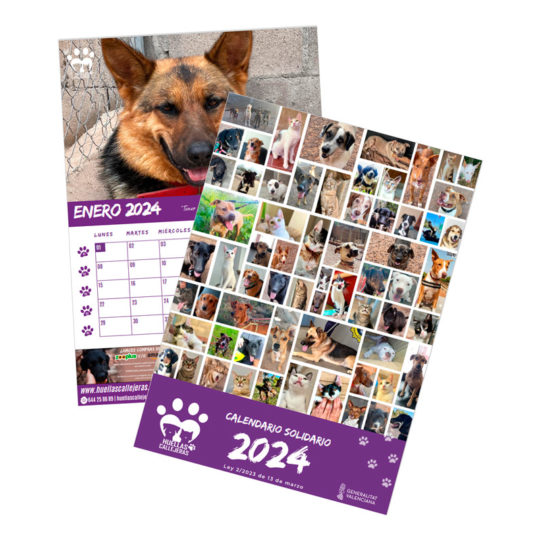 Calendarios solidarios a beneficio de los animales acogidos por la asoc. protectora de animales «Huellas Callejeras»