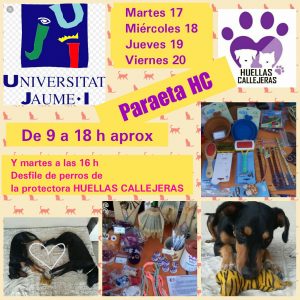 Eventos en los que participa Huellas Callejeras Cs, o que se organizan en beneficio para los peluditos callejeros. Mira la relación de los eventos o impórtalo a tu calendario de Google, y así no te perderás ninguno de nuestros eventos.