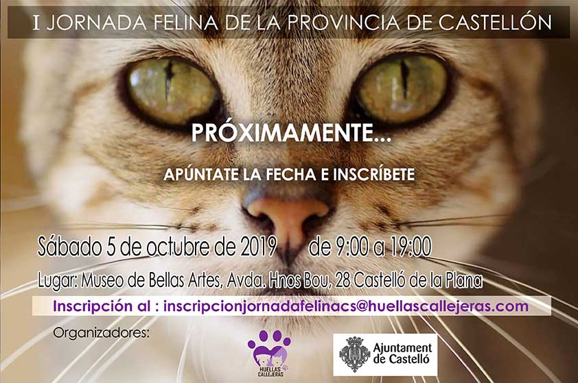 Llega a Castellón la I Jornada Felina de la mano de la Asociación Cultural, Educativa y de Mediación de Protección Animal "Huellas Callejeras" y del Excmo. Ayuntamiento de Castelló. Siguiendo...