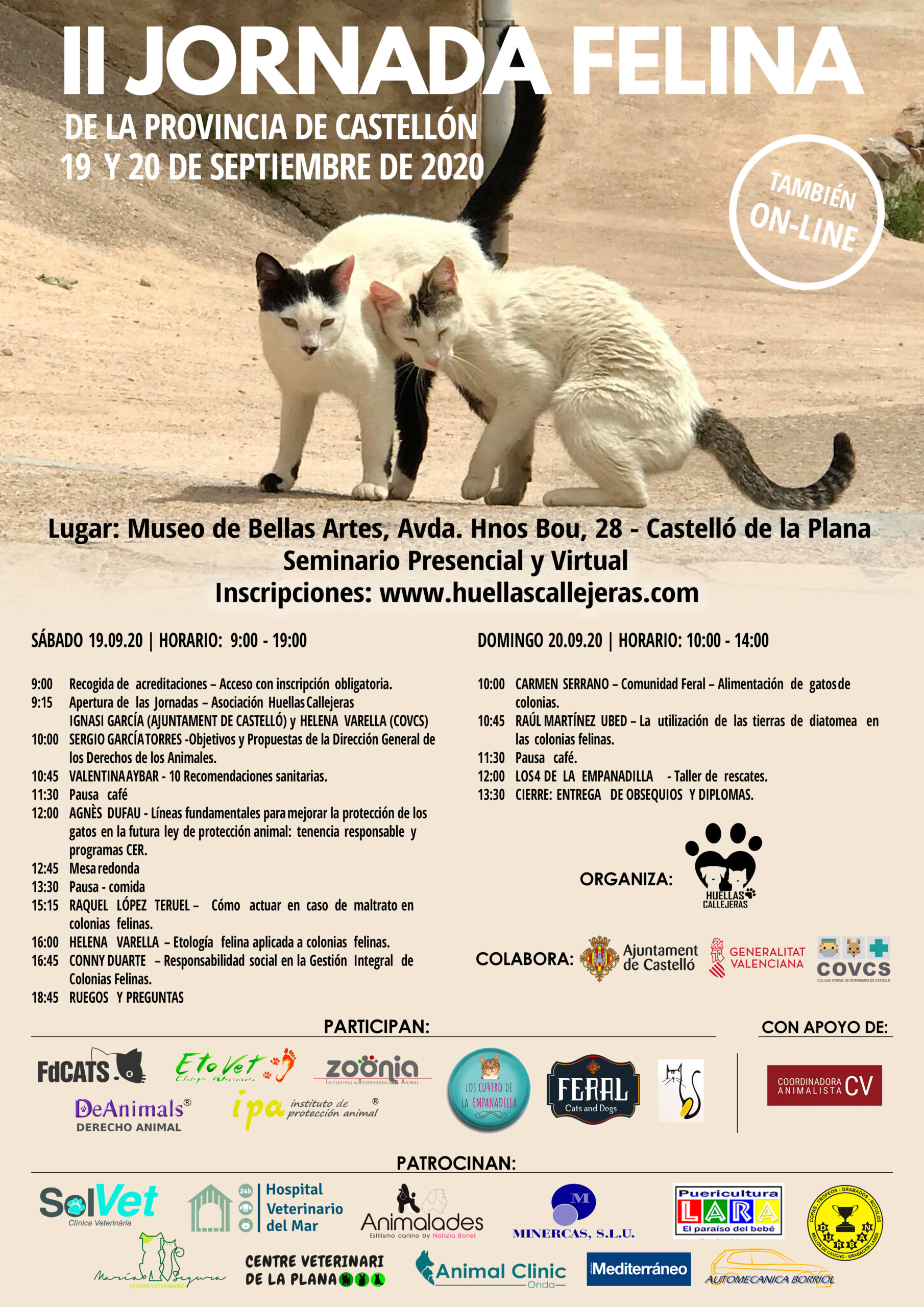 En octubre de 2019 Castelló se convirtió en la ciudad felina de la provincia ya que tuvo lugar la I Jornada Felina de la Provincia de Castellón. Allí se reunieron referentes internacionales como Agnès Dufau, ganadora del Cat Care Welfare Award, así como ponentes del mundo del derecho, del veterinario, de las fuerzas del orden, de las administraciones, y expertos en alimentación y cuidados de las colonias felinas. Asistieron más de 80 personas durante más de 8 horas de ponencias.