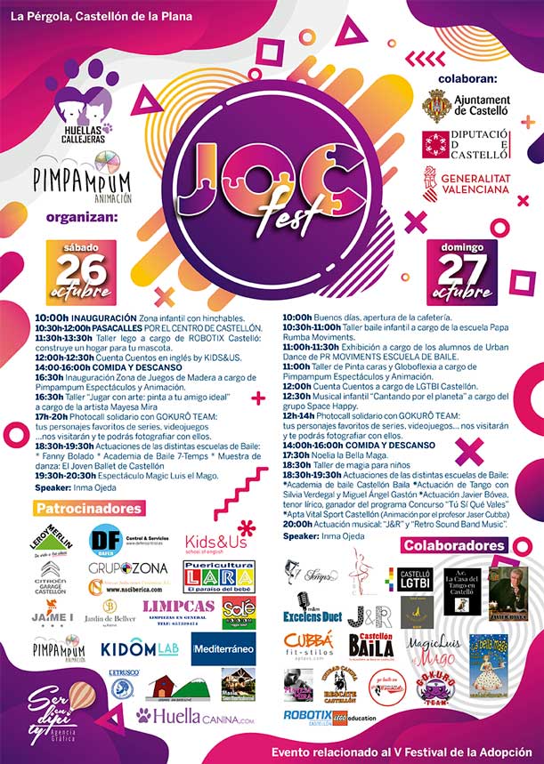 JOC Fest llega a Castellón un evento lleno de actividades dirigidos a las familias, y particularmente a los niños y niñas entre 3 y 9 años. Este evento llega de la mano del V Festival de la Adopción, y nace con mucha ilusión para compartir momentos de alegría y diversión en familia .