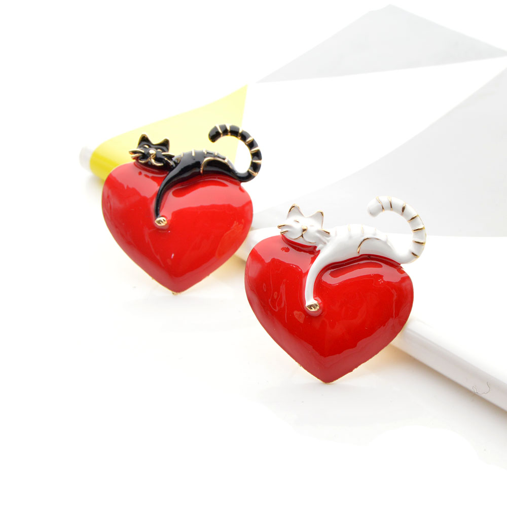 Divertido broche con diseño de gatito abrazando un corazón, ideal para ponerlo en una chaqueta, vestido, mochila, etc.