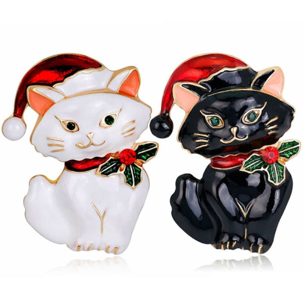 Divertido broche navideño de gatito con ramita y gorrito de navidad, ideal darle un toque navideño a cualquier prenda. Si te gustan la navidad y los gatos este es tu broche.
