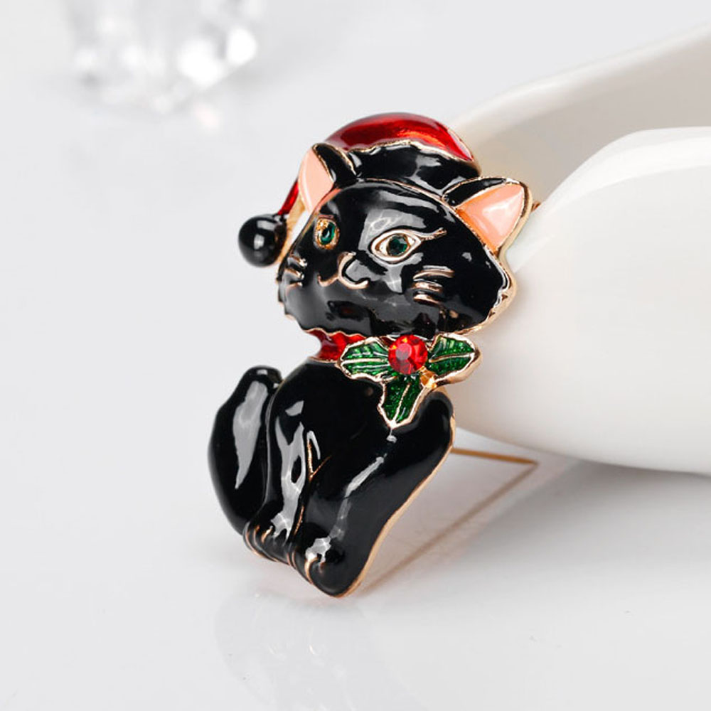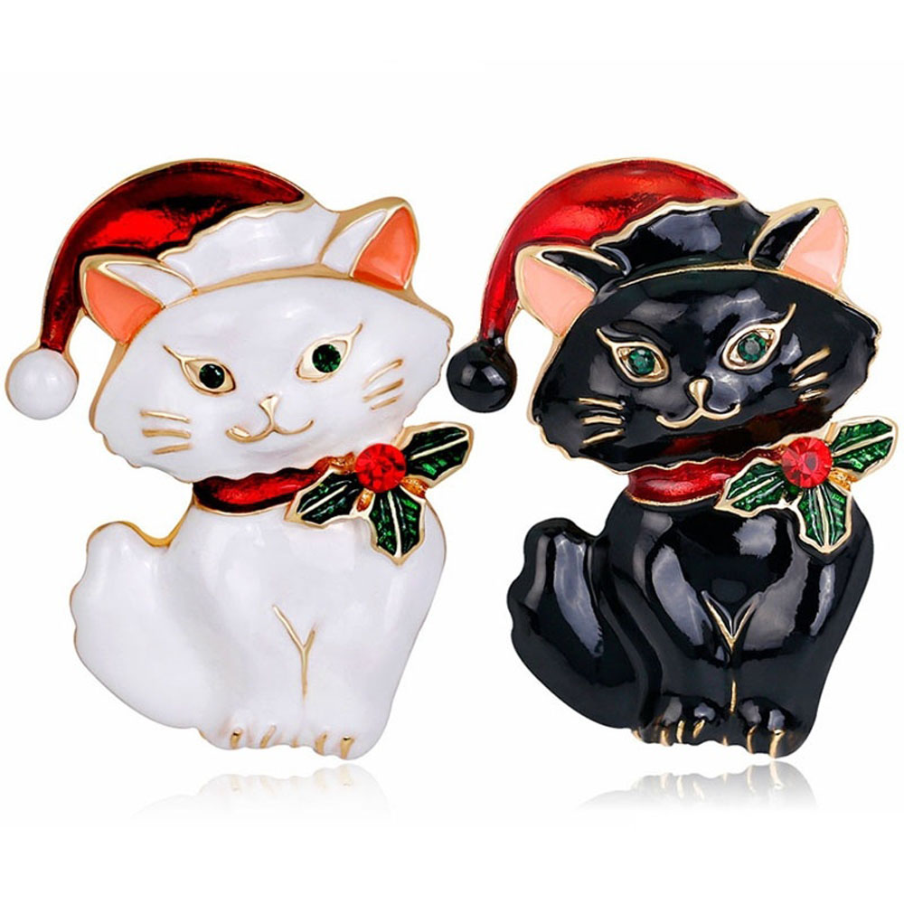Precioso broche navideño de gatito con gorrito navideño, elige el color que más te gusta.
