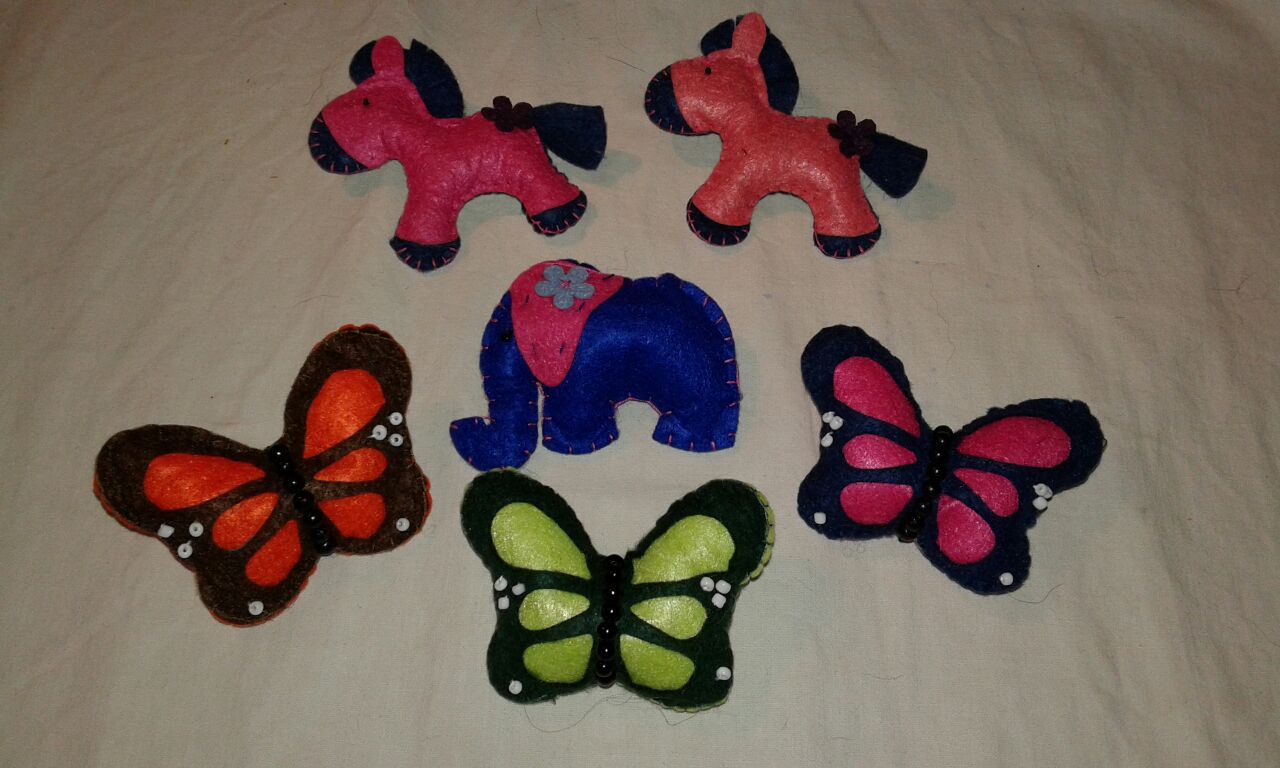 Broches de fieltro hechos a mano, mimando y cuidando los detalles, diferentes modelos y diseños.