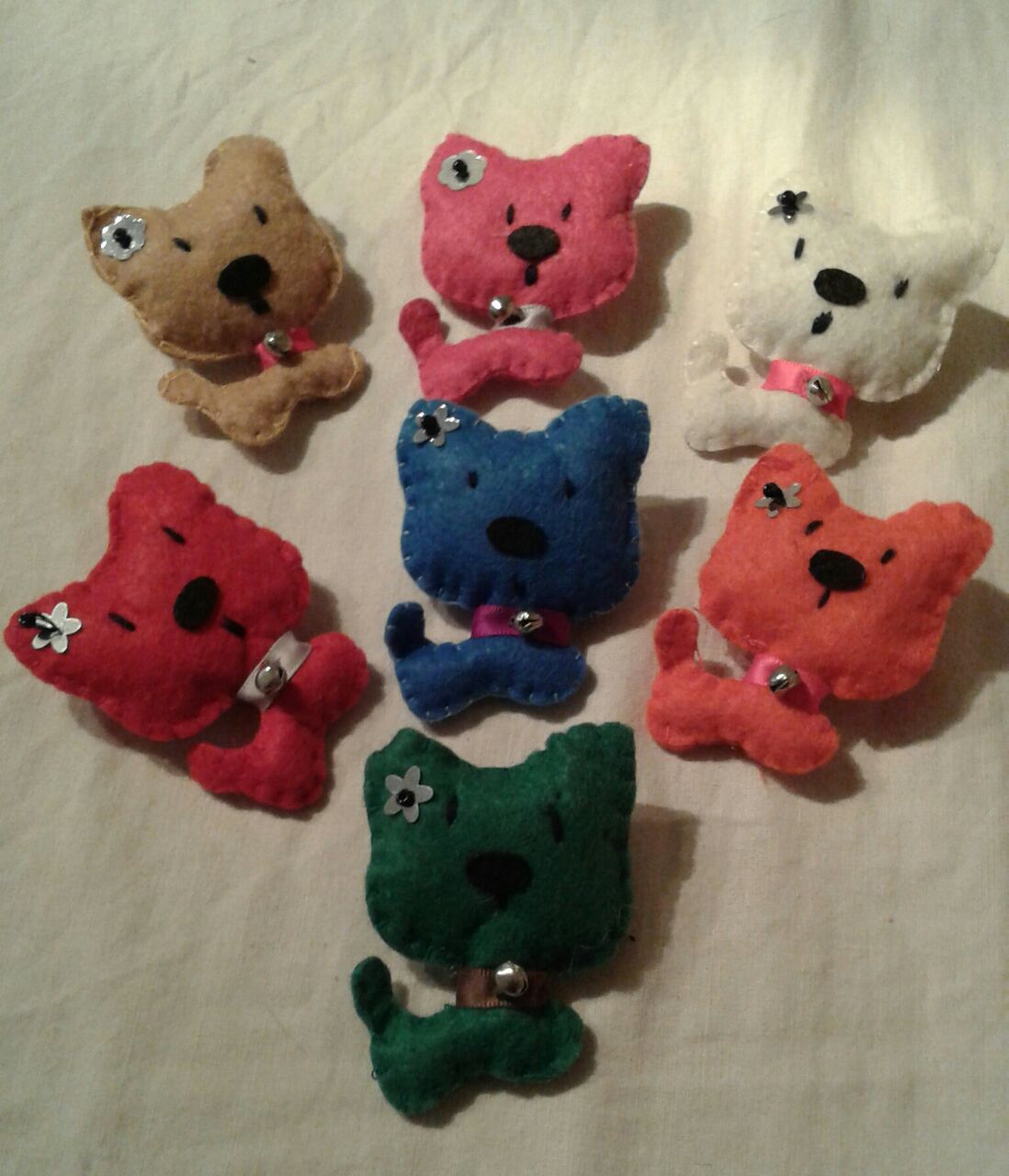 Broches de fieltro hechos a mano, mimando y cuidando los detalles, diferentes modelos y diseños, puedes encargarlos personalizados, para regalarlo a tus invitados en fechas especiales como boda, comunión, bautizos, cumpleaños etc. Puedes encargarlos también en llaveros, colgante para coches, etc,