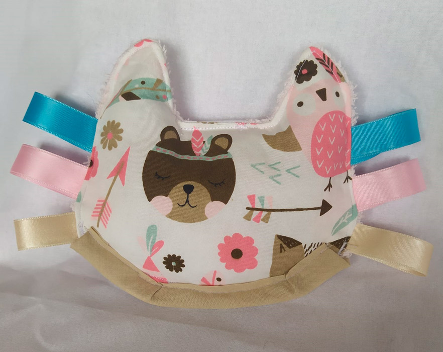 – El juguete sensorial tiene forma de gato y es de tela de algodón y rizo suave. Medidas aprox. 12cm x 10cm.