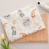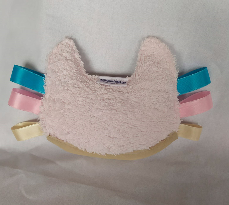– El babero por un lado es de tela estampada de algodón y por el otro de tela de rizo muy suave.