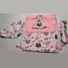 – El neceser forrado en su interior, tiene capacidad para pañales, un paquete de toallitas y cremas. Medidas aproximadas: 28cm x 18cm x 6cm