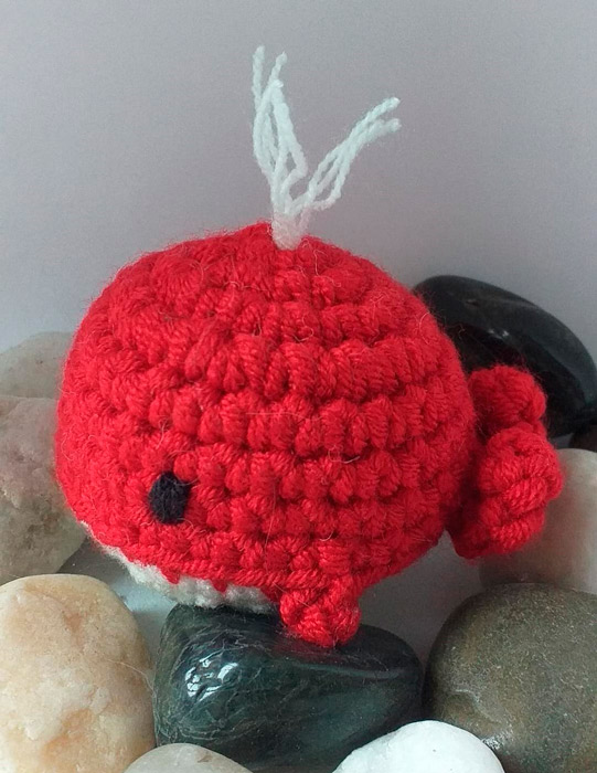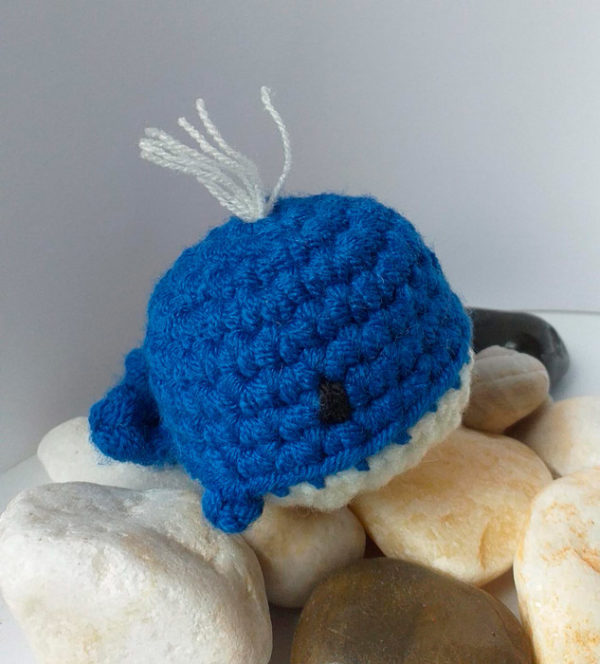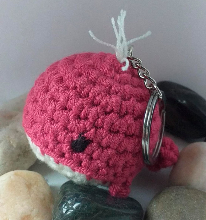Llavero amigurumi hecho a mano de ganchillo/crochet de hilo acrílico en forma de ballena.