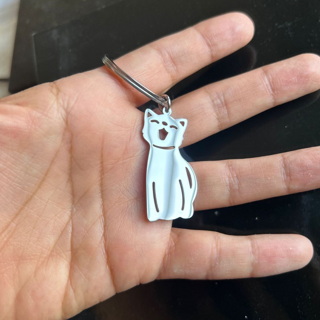 Llavero de acero inoxidable con la silueta de un gatito muy adorable.