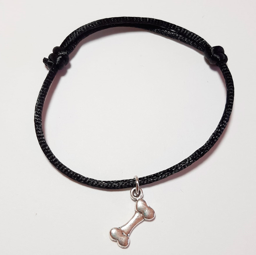 Pulsera cola de ratón de diferentes colores y con diferentes adornos. Ajustable con los dos nudos corredizos.