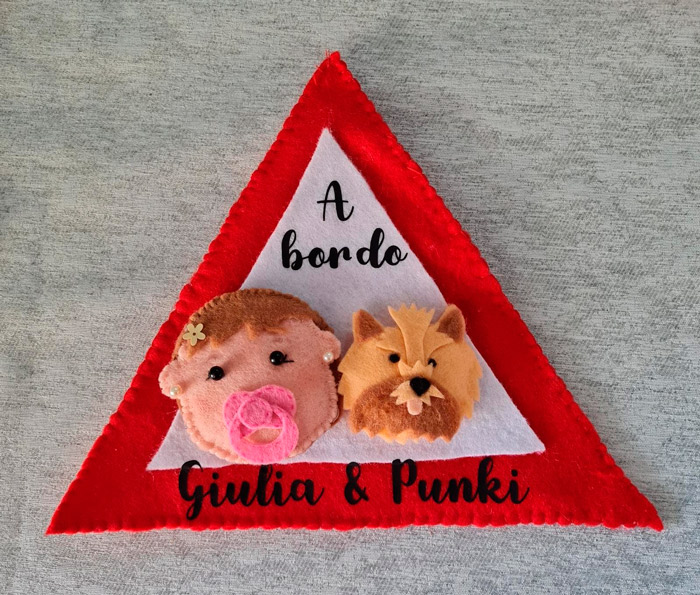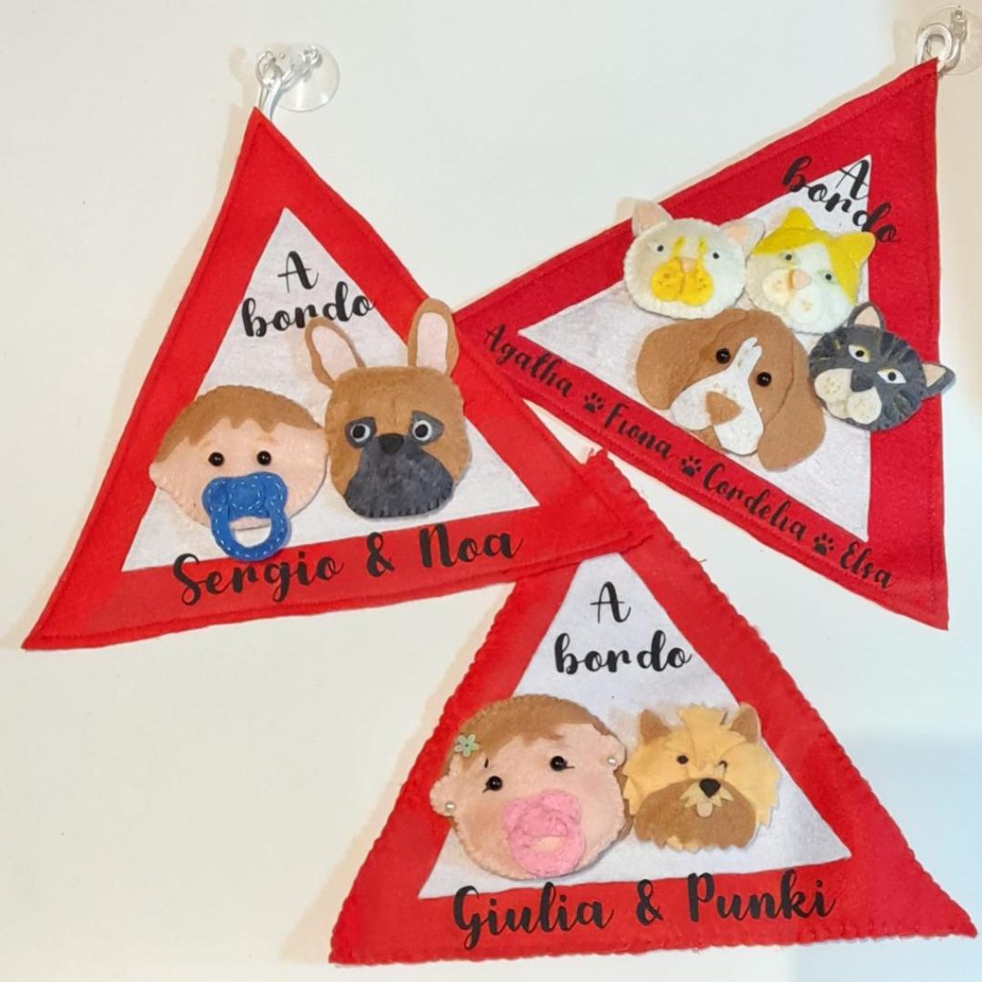 Triángulo para advertir a los conductores que lleváis a bordo a vuestro bebé, perro, gato, etc. Divertido diseño hecho a mano que puedes personalizar.
