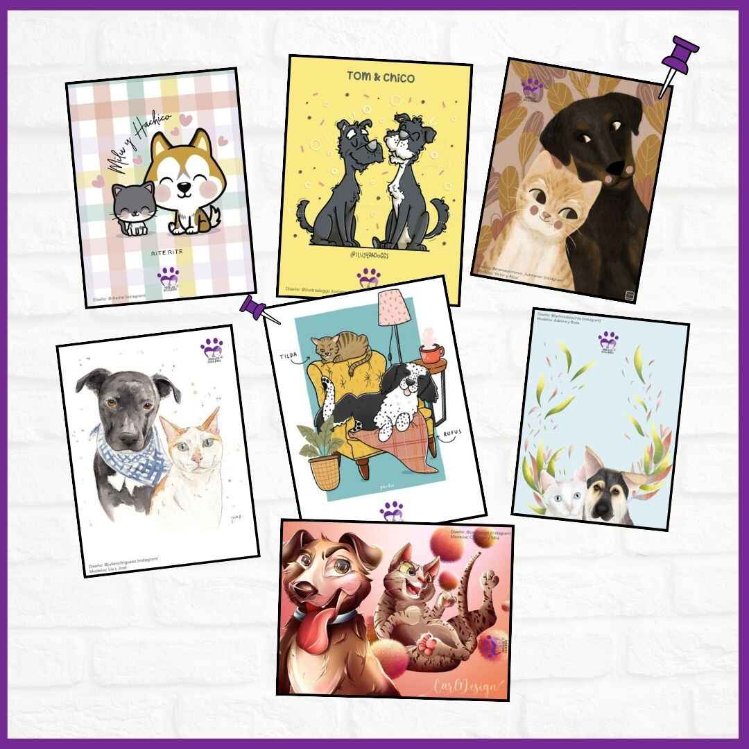Postales solidarias con 7 diseños diferentes en los que los protagonistas son nuestros queridos protegidos. Con estas postales estás ayudando a todos los animales que necesitan comida, cuidados y amor.