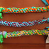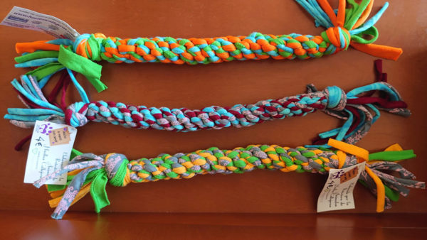 Mordedor multicolor con forma de cuerda resistente de trapillo y dos nudos, genial para el entretenimiento de tu perro. Es un juguete ideal para fortalecer las encías y mantener una buena higiene dental. Disponible en 3 tallas.