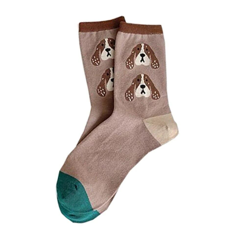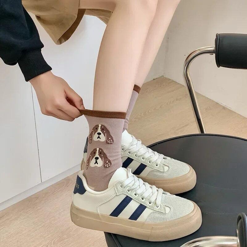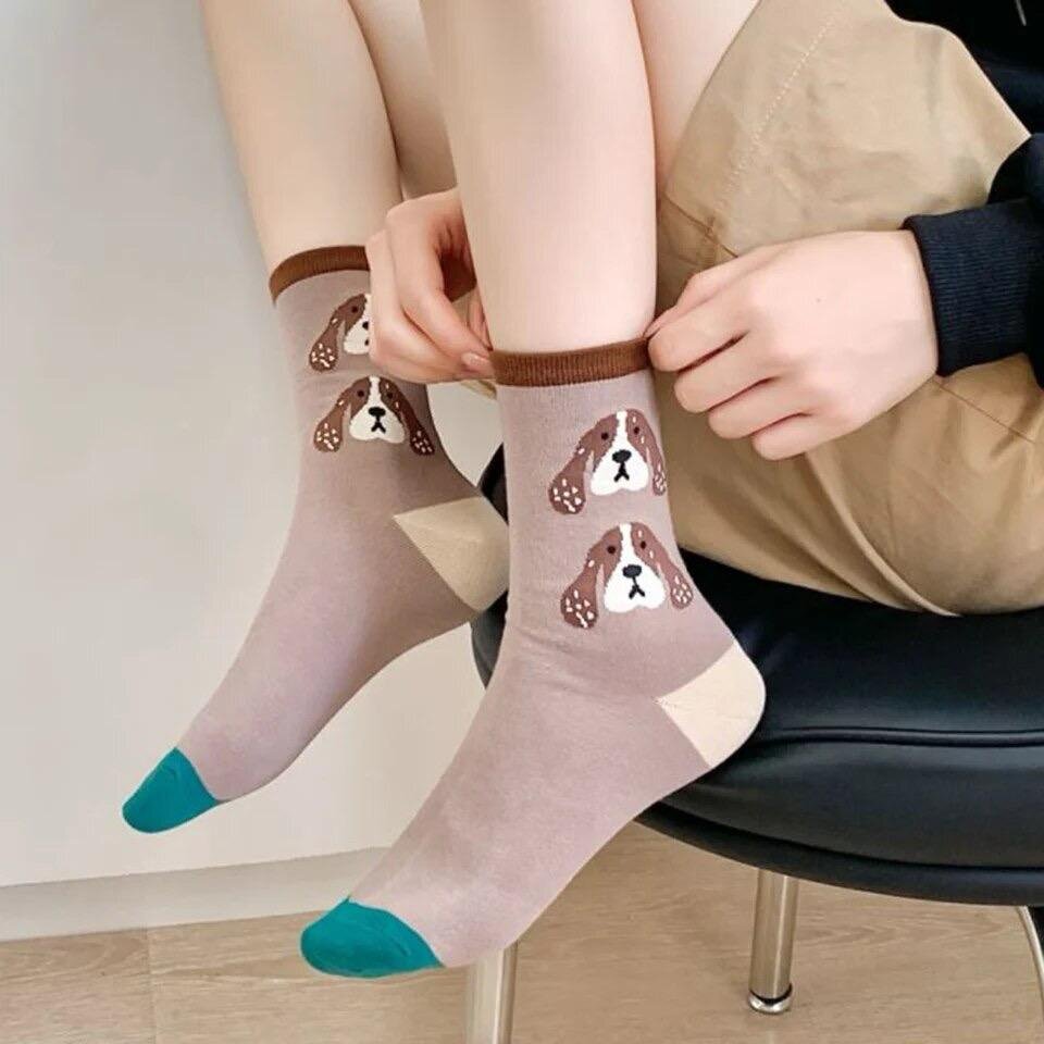 Calcetines medianos de algodón con dibujo de dos caritas de perros a cada lado.