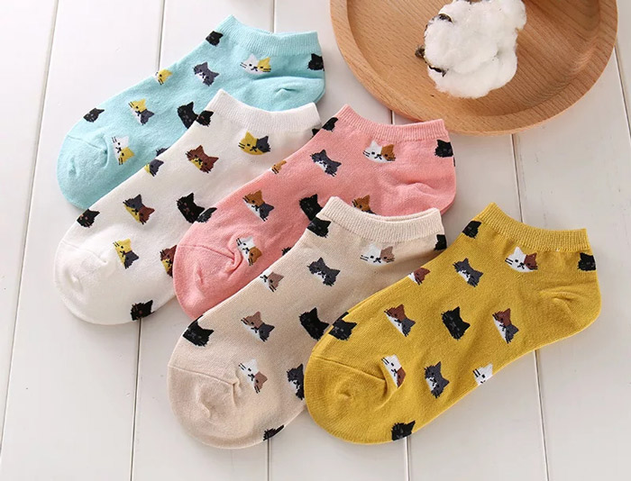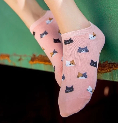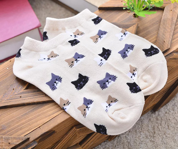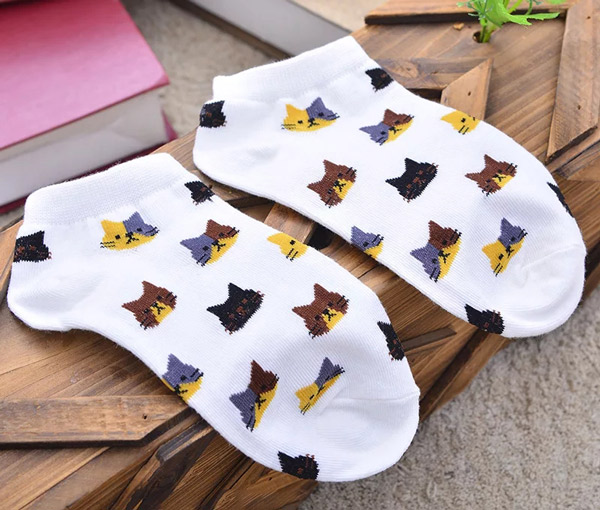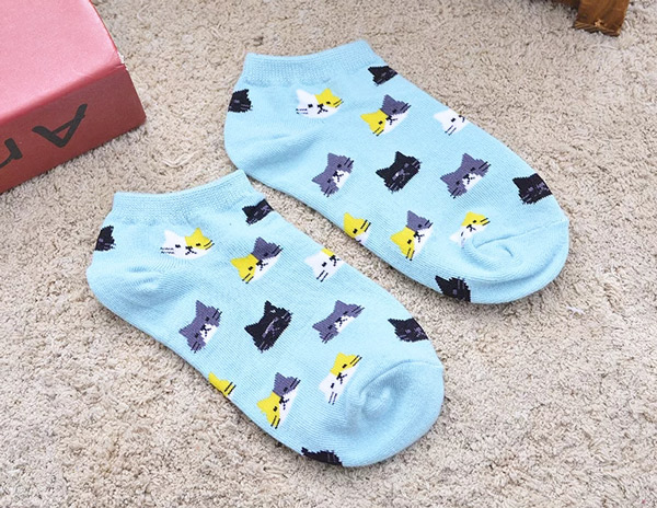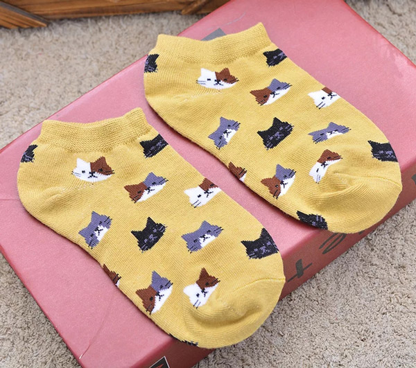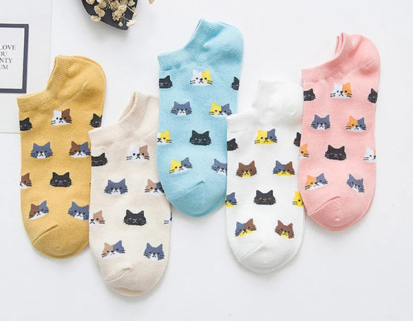 Calcetines tobilleros con divertidos dibujos de caritas de gatitos. Son muy suaves y puedes usarlos en cualquier ocasión, además es un regalo ideal para esa persona especial