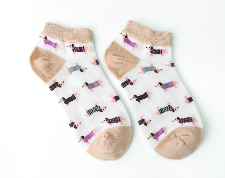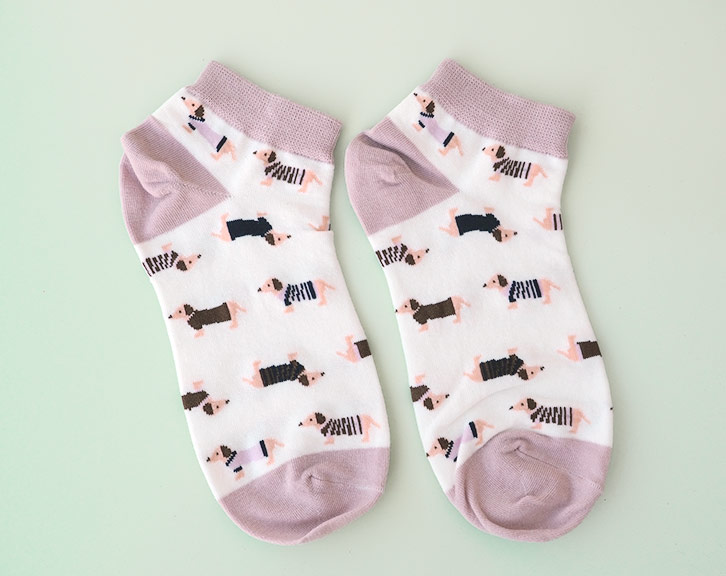 Calcetines tobilleros con divertidos dibujos de perritos. Son muy suaves y puedes usarlos en cualquier ocasión, además es un regalo ideal para esa persona especial.