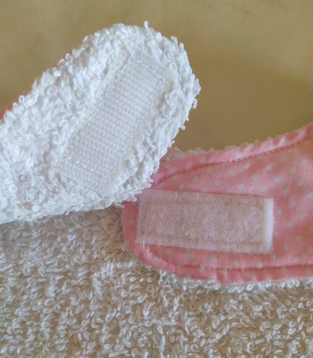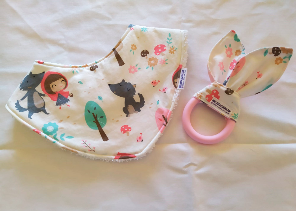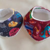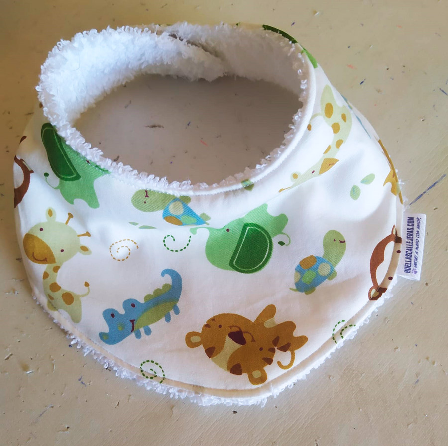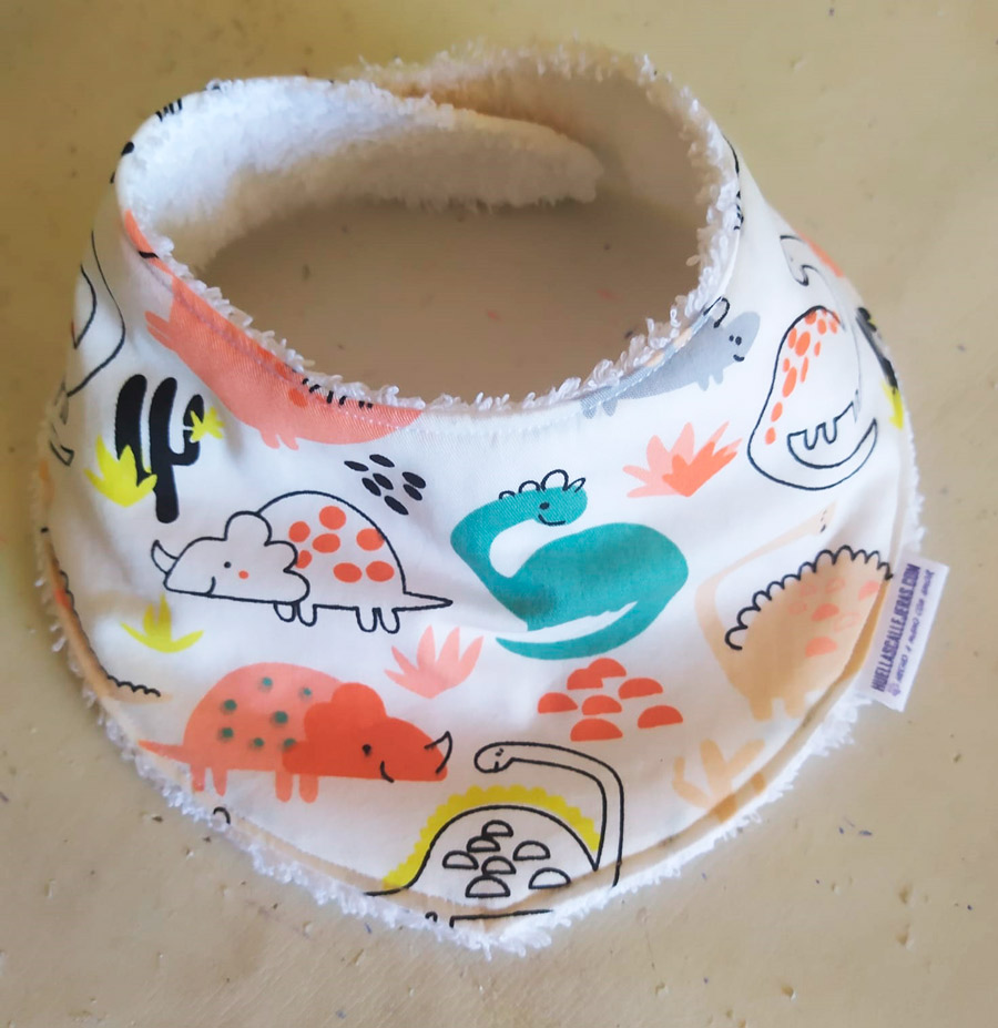 Bandana triangular de algodón y reverso de rizo. Ideal para las babitas típicas del periodo de dentición de los bebés. Cierre con Velcro.