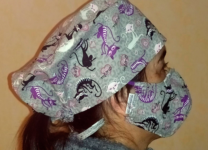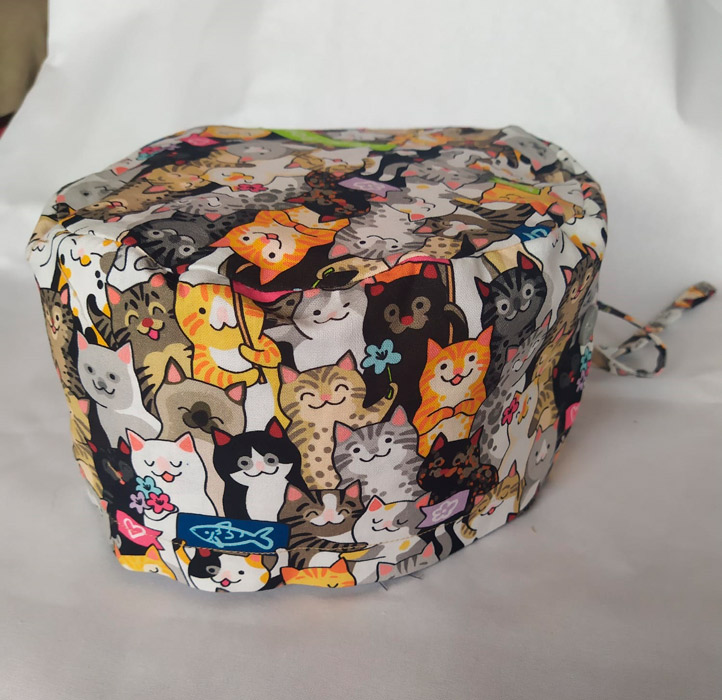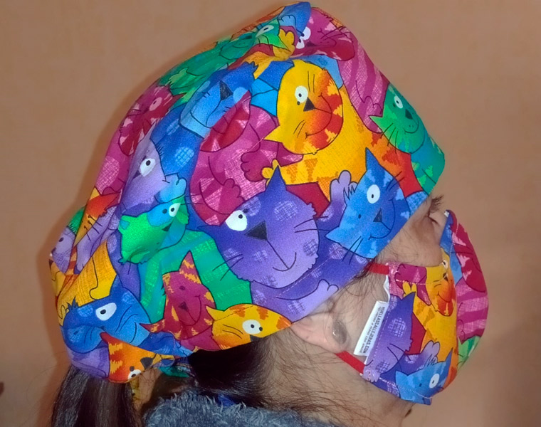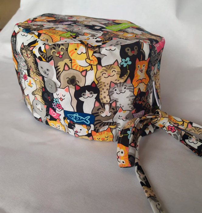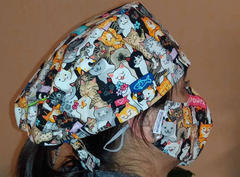 Gorros sanitarios tipo casquete para cirujanos, dentistas, pediatras, enfermeras, enfermeros, etc. Higiénicos, prácticos y cómodos. Firme sujeción mediante cintas de tela en la parte trasera para ajustar a la medida deseada. Llevan botones en los laterales para sujetar las gomas de las mascarillas.